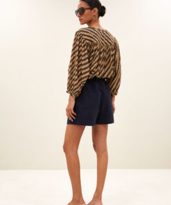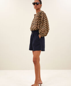 The leon twill short is a casual short with a high waist and a comfortable, relaxed fit. Thanks to the handy zip and button closure and side pockets, it offers both style and functionality. Perfect for laid-back days when you want to effortlessly exude a polished look.