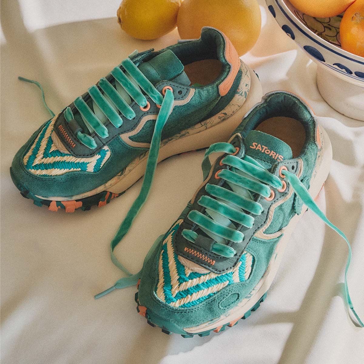 - Extra laces with a velvety finish and eyelets in contrast colours to the leather