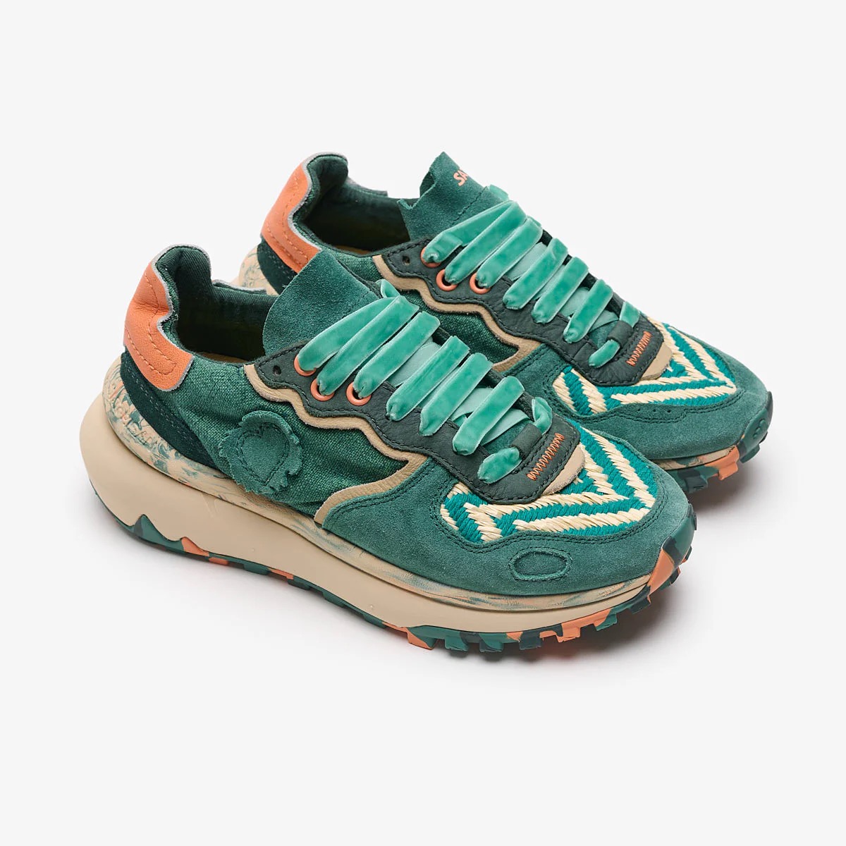 This beautiful reinterpretation of our Chacrona not only features our Metta Love sole, but also stands out for the combination of fabrics used on the vamp, creating striking two-tone patterns and making each pair unique.